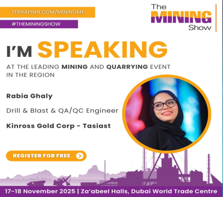 Rabia Ghaly, ingénieure mauritanienne a été doublement nommée speaker et invitée d’honneur de la 17e édition de The Mining Show 2025” à Dubaï, qui est un événement majeur pour l’industrie minière au Moyen-Orient, en Afrique du Nord.